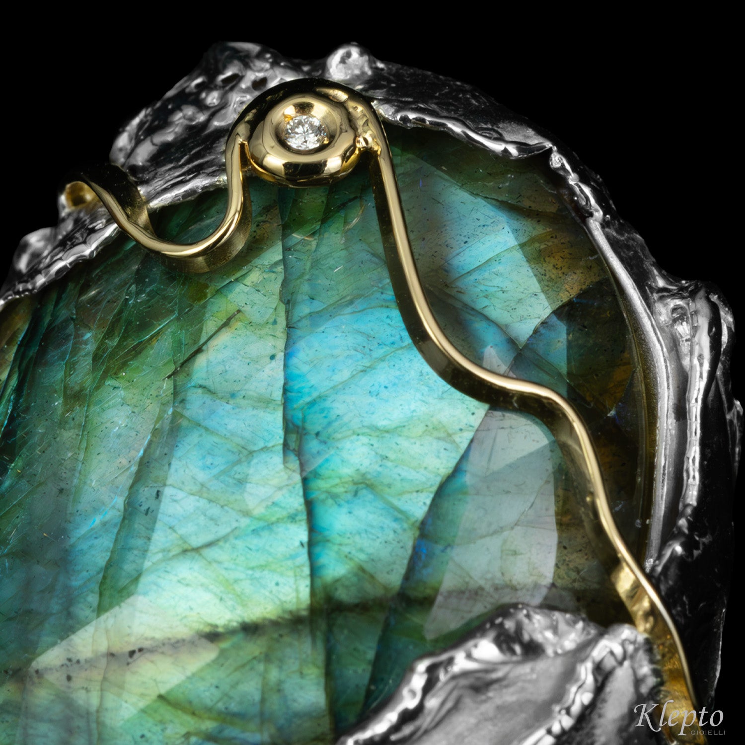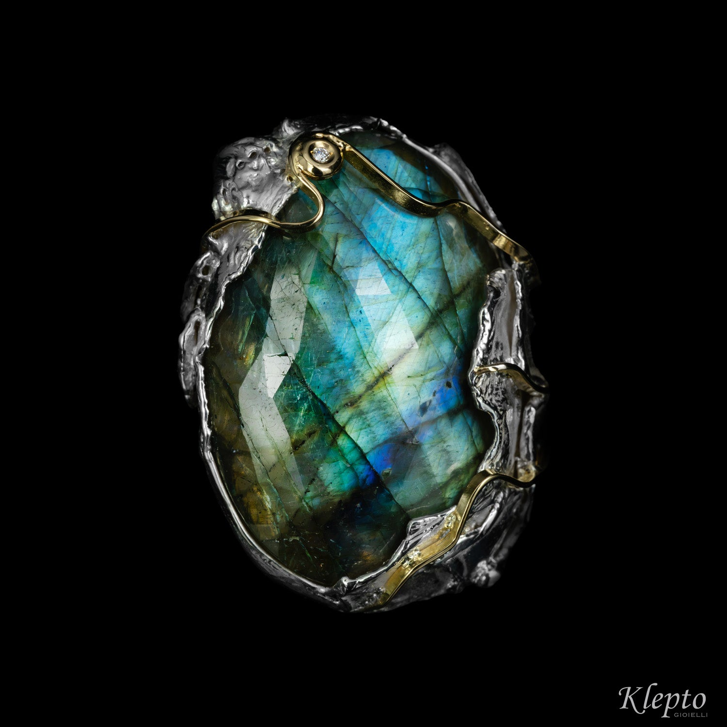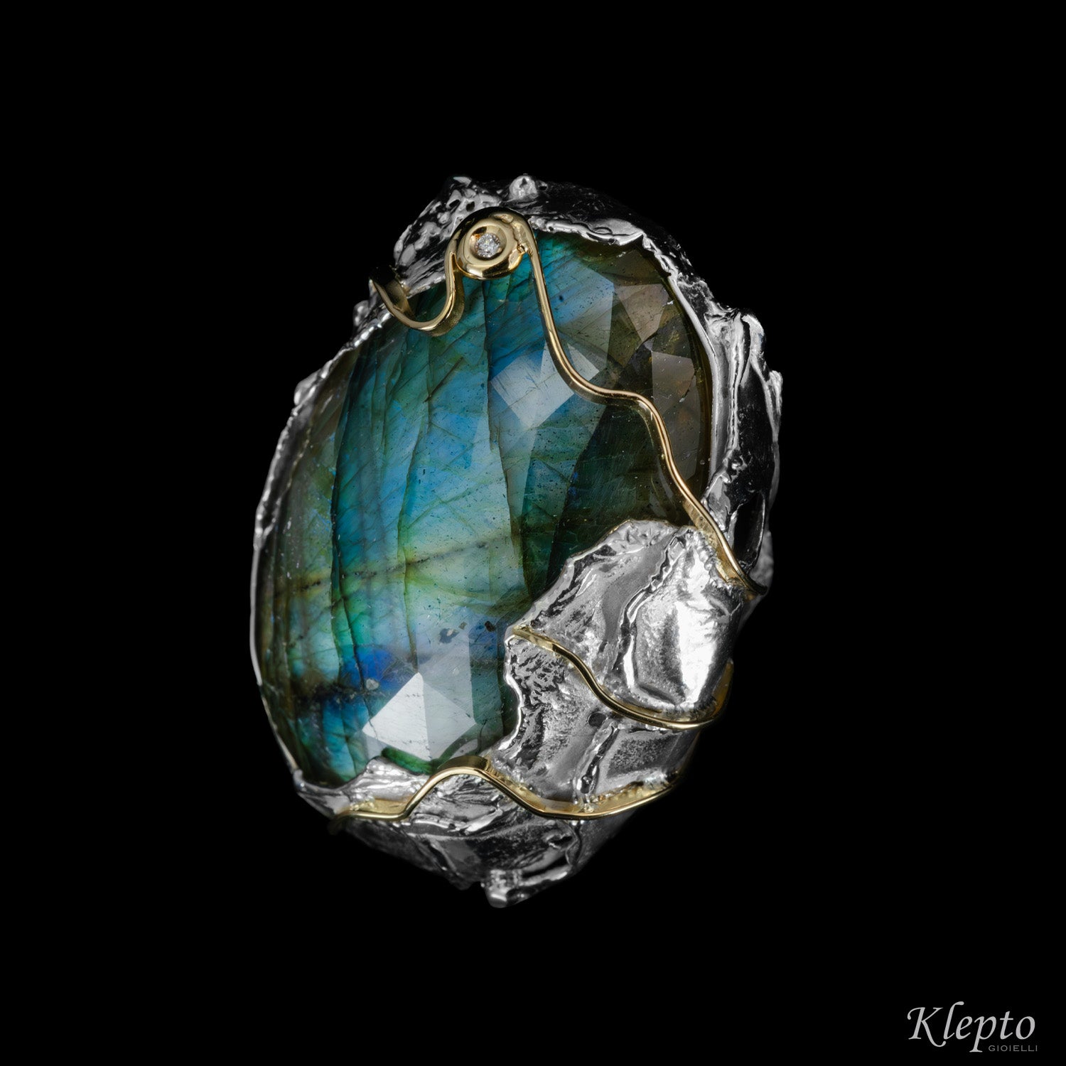 Silnova Silver ring with Labradorite, Diamond and 18kt yellow gold details