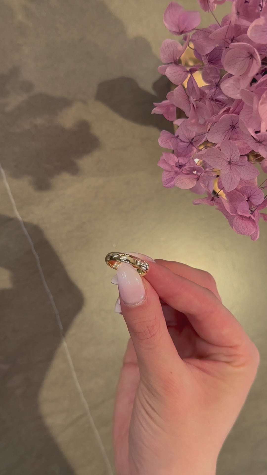 A reinterpretation of the classic wedding band, a soft, rounded shape but with modern dimensions and finishes.